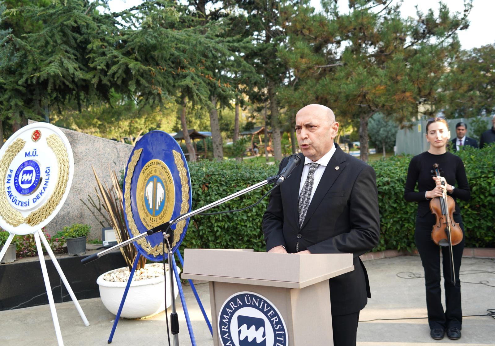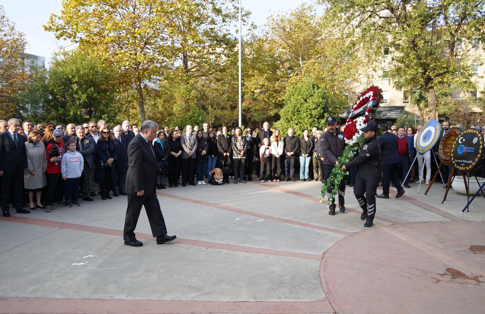 The program began with Rector Prof. Dr. Mehmet Emin Okur laying a wreath at the Atatürk Monument. This was followed by a moment of silence observed at 9:05 a.m. accompanied by the siren, after which the Turkish National Anthem was performed under the direction of Prof. Dr. Mustafa Uslu from the Department of Fine Arts Education at Marmara University’s Atatürk Faculty of Education.