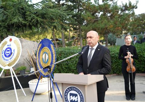 The memory of Gazi Mustafa Kemal Atatürk was honored with respect, gratitude, and longing by the Marmara University community during the ceremony.