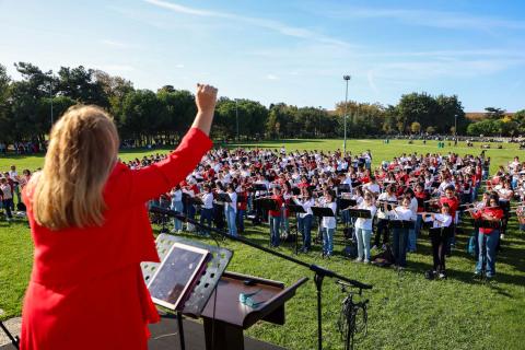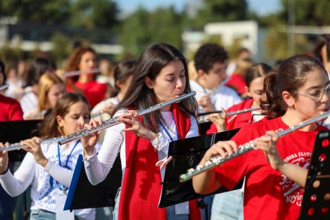 Under the leadership of Prof. Dr. Ece Karşal from the Department of Music at Marmara University’s Faculty of Fine Arts, the Marmara Flute Orchestra (MFO) celebrated both its 10th anniversary and the 102nd anniversary of the Turkish Republic by setting a new record for the largest flute ensemble in Turkey during an event held on October 26, making history in Turkish music.