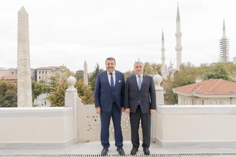 Bezmiâlem Vakıf Üniversitesi Rektörü Prof. Dr. Adem Akçakaya, 12 Kasım Çarşamba günü Rektör Prof. Dr. Mehmet Emin Okur’u makamında ziyaret etti.