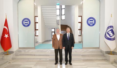 Marmara Üniversitesi Sultanahmet Yerleşkesi’nde bulunan Rektörlük makamında gerçekleştirilen nezaket ziyaretinde Prof. Dr. İnci, Rektör Prof. Dr. Okur’u üstlenmiş olduğu yeni görevinden ötürü tebrik ederek başarı temennilerini iletti. Rektör Prof. Dr. Mehmet Emin Okur ise Prof. Dr. İnci’ye teşekkürlerini sundu.
