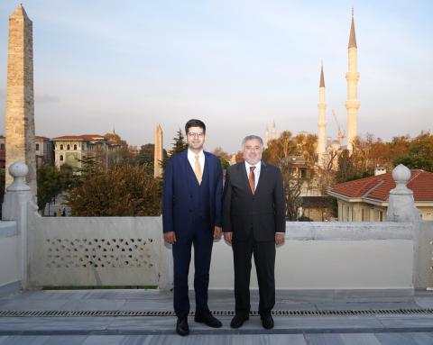 Marmara Üniversitesi Sultanahmet Yerleşkesi’nde bulunan Rektörlük makamında gerçekleştirilen nezaket ziyaretinde Başkan Dağlıoğlu, Rektör Prof. Dr. Okur’u üstlenmiş olduğu yeni görevinden ötürü tebrik ederek başarı temennilerini iletti. Rektör Prof. Dr. Mehmet Emin Okur ise Başkan Dağlıoğlu’na teşekkürlerini sundu.