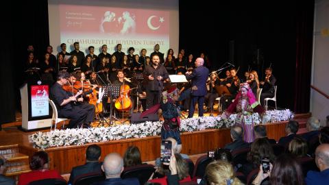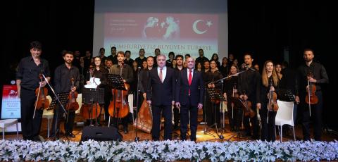 Cumhuriyet’in 102. yılı kapsamında düzenlenen program, Cumhuriyet’in bir asırlık sürecine ışık tutan fotoğraf ve belgelerin yer aldığı “Cumhuriyetle Büyüyen Türkiye” adlı serginin açılışının ardından saygı duruşu ve Müzik Eğitimi Ana Bilim Dalı öğretim üyesi Prof. Dr. Mustafa Uslu yönetiminde okunan İstiklal Marşı ile başladı.