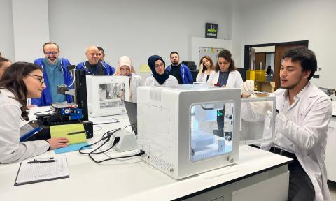 Eğitim programında 3D biyoyazıcılarla doku iskelesi üretimi, elektrospin yöntemiyle nanofiber hazırlama, süperkritik ekstraksiyon teknikleri ve atıkların biyomalzemelere dönüştürülmesine ilişkin süreçler ele alındı. Ayrıca Dr. Elif İlhan rehberliğinde hücre laboratuvarında atölye çalışmaları gerçekleştirildi ve katılımcılar karakterizasyon cihazlarını yerinde inceleme olanağı buldu.