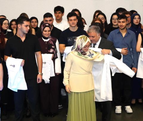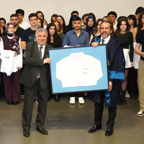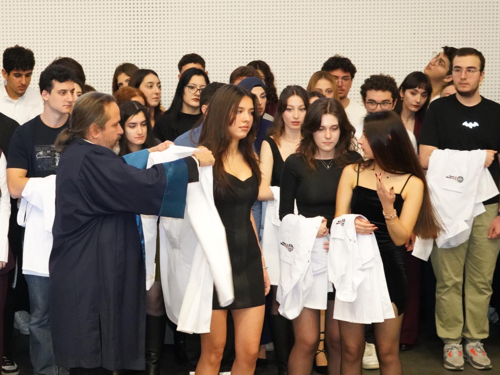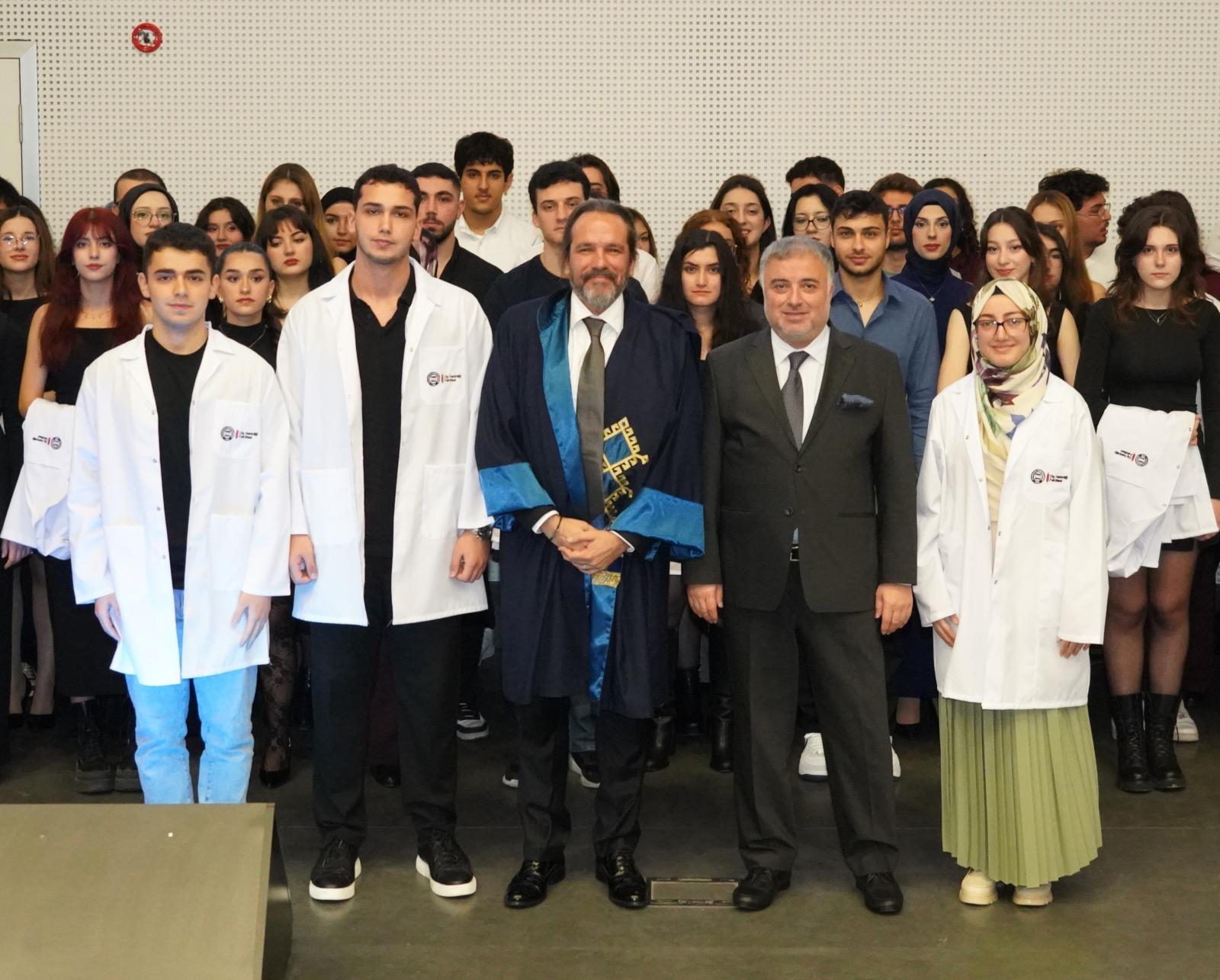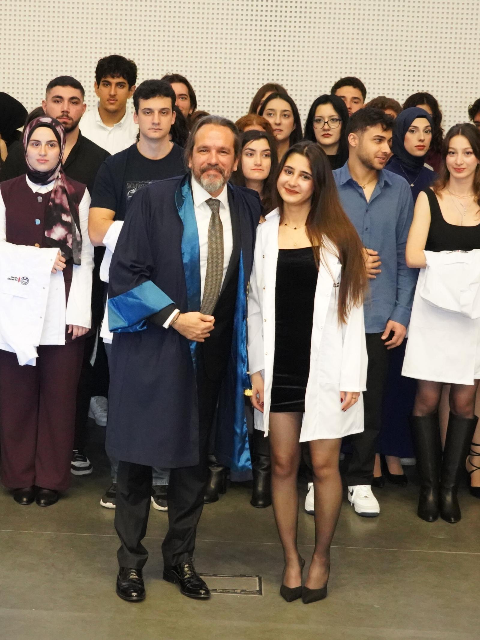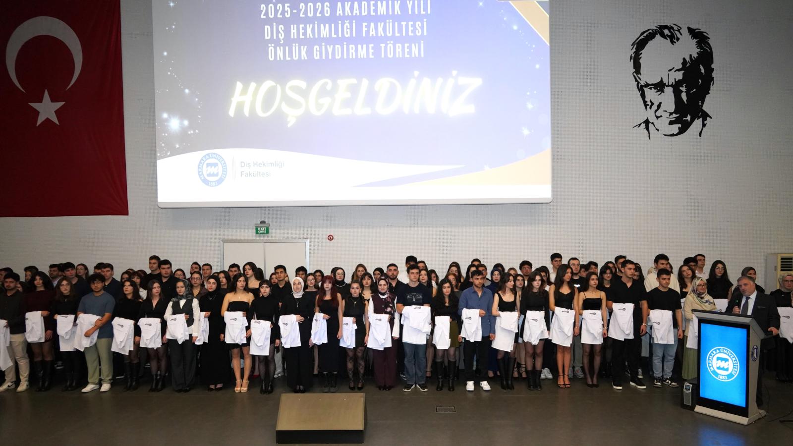 Marmara Üniversitesi Diş Hekimliği Fakültesi 2025-2026 Akademik Yılı Önlük Giydirme Töreni, 01 Aralık Pazartesi günü Dr. N. Sertaç Sırma Konferans Salonu’nda gerçekleştirildi. Düzenlenen programa, Marmara Üniversitesi Rektörü Prof. Dr. Mehmet Emin Okur, Diş Hekimliği Fakültesi Dekanı Prof. Dr. Korkut Ulucan, Dekan Yardımcıları Prof. Dr. Gühan Dergin ve Doç. Dr. Erkut Kahramanoğlu ile Sağlık Bilimleri Enstitüsü Müdürü Prof. Dr. Feyza Arıcıoğlu’nun yanı sıra öğretim üyeleri ve öğrenciler katıldı.