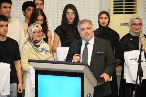 Diş Hekimliği Fakültesi Dekanı Prof. Dr. Korkut Ulucan, öğrencilerin ve ailelerin bugün özel bir günü birlikte yaşayacaklarını belirterek, “Bugün sizlerin günü. Çocuklarınız en iyi eğitimi alabilecekleri fakültelerden birinde eğitimlerine devam edecekler.” dedi. Eğitim ve uygulama merkezini bir arada barındıran rol model bir fakülte olduklarını vurgulayan Prof. Dr. Ulucan, öğrencilerin akademik olduğu kadar kültürel açıdan da yetiştirilmesinin önemine dikkat çekti. Dekan Ulucan, “Öğrencilerimizi sadece akademik anlamda değil, toplumumuzun örf ve âdetlerine ve kültürümüze uygun şekilde yetiştirmek için elimizden geleni yapacağız. Onları saygılı, şifa vermeyi bilen bireyler olarak yetiştireceğiz.” ifadelerini kullandı.