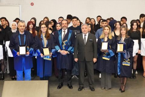 Törenin ardından, TÜBİTAK, TÜSEB, ADEP ve NAP projeleri ile fakülteye bilimsel katkı sunan ve akademik yükselme kaydeden öğretim üyelerine plaketleri verildi. Ayrıca fakülteye dereceyle yerleşen ve üstün başarı gösteren öğrencilere beyaz önlükleri Rektör Prof. Dr. Mehmet Emin Okur ile Dekan Prof. Dr. Korkut Ulucan tarafından giydirildi.