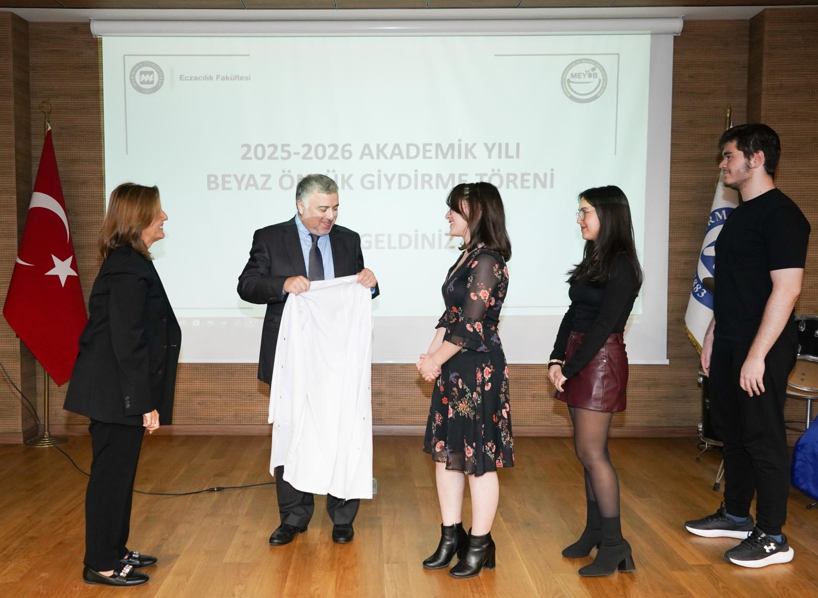 Marmara Üniversitesi Eczacılık Fakültesi 2025-2026 Akademik Yılı Beyaz Önlük Giydirme Töreni, 18 Kasım tarihinde Marmara Üniversitesi Eczacılık Fakültesinde gerçekleştirildi. Fakülte konferans salonunda düzenlenen programa Marmara Üniversitesi Rektörü Prof. Dr. Mehmet Emin Okur, Eczacılık Fakültesi Dekanı Prof. Dr. Hatice Kübra Elçioğlu, Marmara Üniversitesi Eczacılık Fakültesi Dekan Yardımcıları Prof. Dr. Oya Kerimoğlu ve Doç. Dr. Turgut Taşkın, akademik kadro ve öğrenciler katıldı.