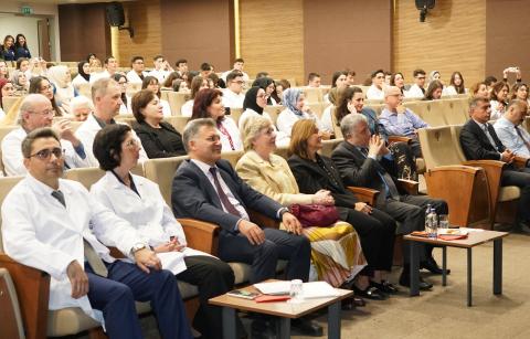 Program, şehitlerimiz için gerçekleştirilen saygı duruşu ve İstiklâl Marşı’nın okunmasının ardından başladı. Törende söz alan Rektör Prof. Dr. Mehmet Emin Okur, beyaz önlük giymenin öğrencilik yolculuğunda önemli bir dönemeç olduğunu belirterek bunun mesleki sorumluluk yükleyen bir başarı durağı olduğunu ifade etti. Diploma gibi önlük giymenin de bir dönüşümün başlangıcı olduğuna dikkat çeken Okur, her insan hayatının kariyerle başlayan bir vizyon bildirgesi olduğunu ve bu vizyonun başarı duraklarıyla anlam kazandığını söyledi. Eczacılık Fakültesinin Türkiye’nin sayılı ve yetkin fakültelerinden biri olduğunu vurgulayan Okur, bugünün imkânlarının geçmişle kıyaslanamayacak ölçüde geliştiğini belirterek öğrencileri tebrik etti ve başarı dileklerini iletti. Hocaların yalnızca teknik bilgi değil; iyi insan olmayı da öğrettiklerini ifade eden Okur, eğitimde esas olanın kalplere dokunabilmek olduğunu vurgulayarak sözlerini tamamladı.